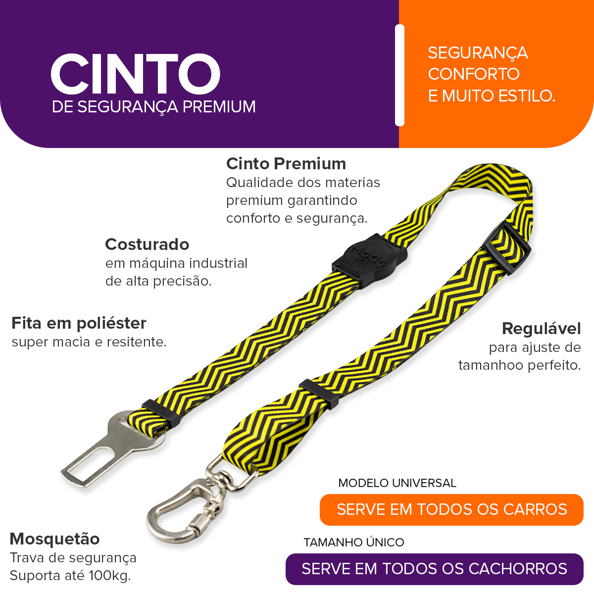 A Cinto de Segurança para cachorros é perfeito para o seu o dia a dia, super macio e confortável para o seu pet. Fecho com sistema de segurança super resistente para te dar mais confiança nos passeios de carro. Design exclusivo para a família toda ficar no estilo. Esse é o Cinto de Segurança, é sempre bom ter um no seu carro, ele é regulável para ficar no tamanho ideal do seu veículo, sem dúvidas o seu pet precisa!