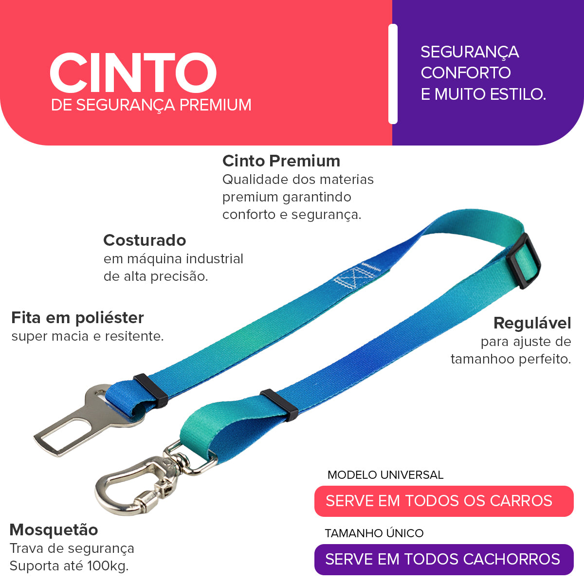 Resistência e Segurança: Fita feita em poliéster, o mesmo material utilizado em cintos de segurança de veículos.