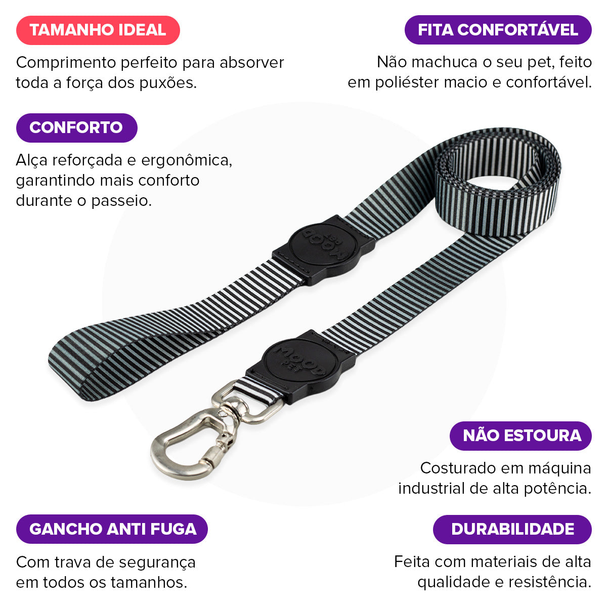 Textura macia para dar mais conforto no passeio.