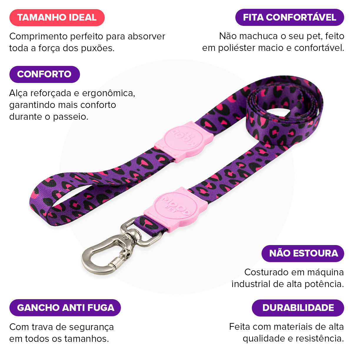 A Guia 2 Metros para cachorros é perfeita para o seu passeio, super macia e confortável para o seu pet e para você. Gancho resistente com rosca para travar e te dar mais segurança no passeio. Design exclusivo para a família toda ficar no estilo. Ela tem 2 metros de comprimento, é a liberdade na medida para o seu pet.